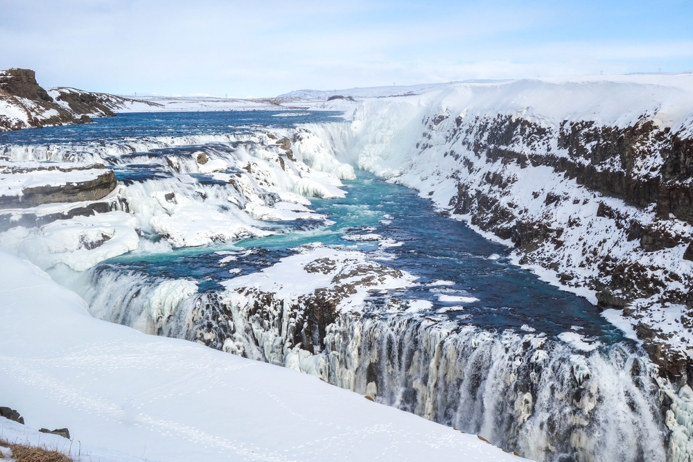 Завершает триаду “Золотой водопад” Гюдльфосс на реке Хвитау. Мощный поток ледниковой реки обрушивается в глубокий каньон, создавая гул, от которого дрожит воздух, а солнечные лучи бликуют в каплях воды, рождая радуги. По желанию вы сможете покататься на снегоходах по леднику Лаунгйёкюдль.
